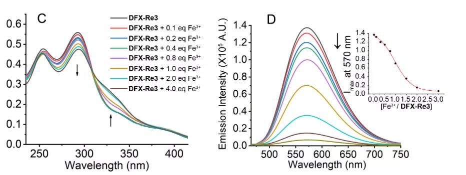 (1)線粒體靶向錸(I)配合物合成與表征,主要加入臨床鐵螯合劑脫鐵石(DFX);