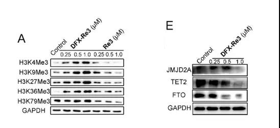 (3)WB實(shí)驗(yàn):DFX-Re3改變鐵穩(wěn)態(tài)影響修飾酶的活性