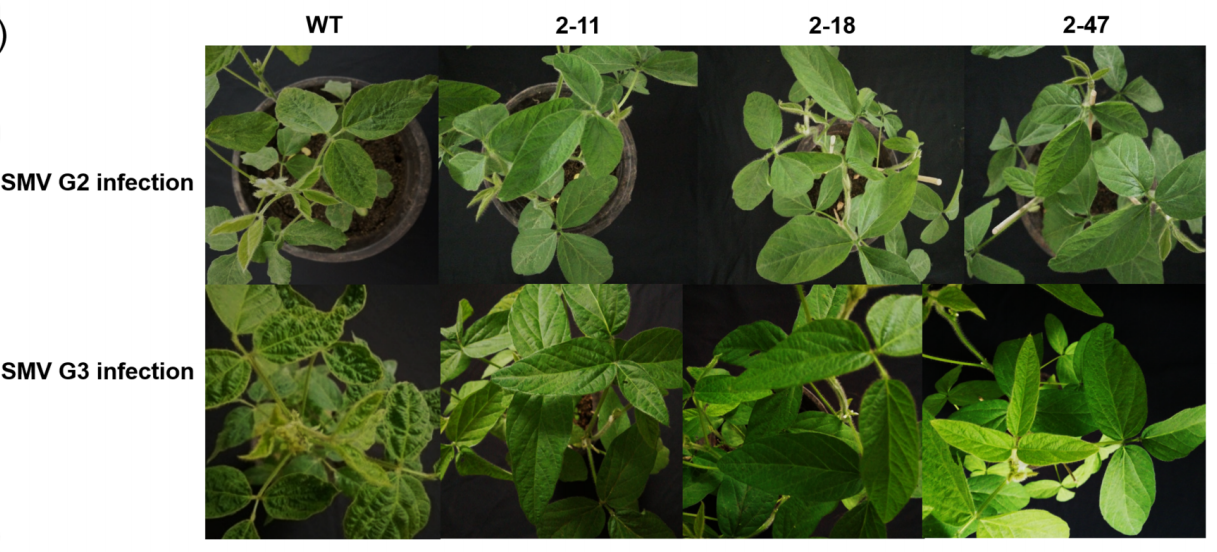 本研究結(jié)合GWAS,BSA,QTLs等群體基因定位研究方法,對大豆植株對大豆花葉病毒G2和G3株的抗性基因座進(jìn)行精細(xì)定位,進(jìn)一步通過轉(zhuǎn)基因過表達(dá),轉(zhuǎn)錄組等方法進(jìn)行驗(yàn)證,最終發(fā)現(xiàn)GmST1基因, 其編碼磺基轉(zhuǎn)移酶, 賦予大豆對大豆花葉病毒G2和G3株的抗性。