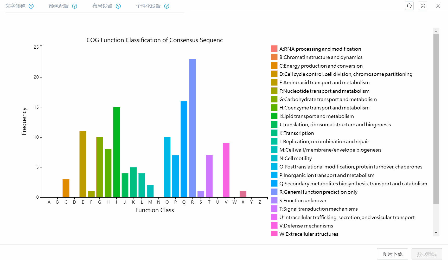 通過高分文章的比較我們不難發(fā)現(xiàn),發(fā)文檔次越高,文章的圖表往往越漂亮。而這些圖標的美觀很大程度取決于好看的配色,但是美學這個東西總是千人千面,標準的分析結(jié)果很難同時滿足大多數(shù)人的需求,所以圖表的顏色調(diào)整在圖表生成中往往占據(jù)著重要的地位。為了滿足客戶的分析需求,百邁客轉(zhuǎn)錄組云平臺開發(fā)了“顏色配置”的新功能,圖表配色一鍵更換,全部換?部分換?想怎么換就怎么換!更有期刊推薦配色送上~