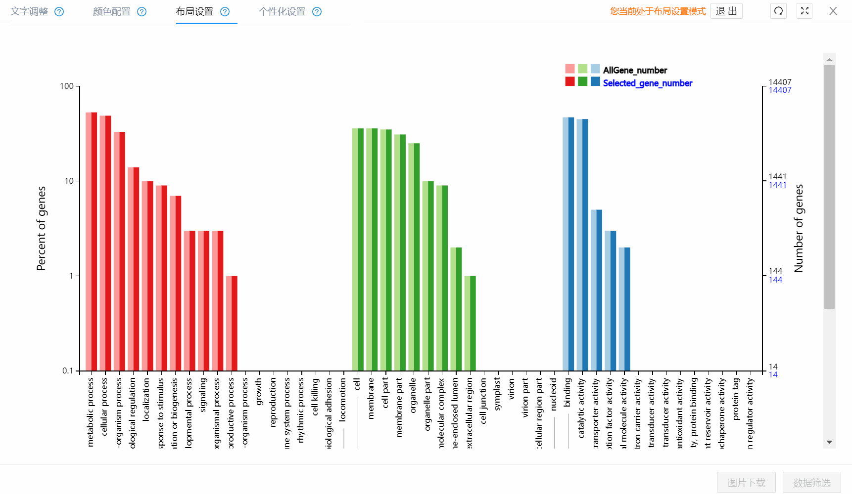 圖片的展示形式隨著文章的整體布局也是千變?nèi)f化的,不同的圖片版式代表了不同的文章個性,是否展示標簽值、標簽是垂直還是傾斜、圖例的位置等等,都在彰顯著作者獨特的科研思維,百邁客轉(zhuǎn)錄組云平臺新上線了修改圖片布局的功能插件,不僅可以修改頁面布局,某個分類的在圖上的隱藏和復現(xiàn)也可隨心調(diào)整,簡直不要太方便啦!
