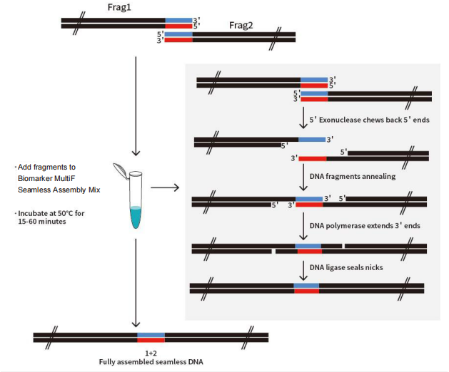 圖1:Biomarker MultiF Seamless Assembly Mix方法原理圖。