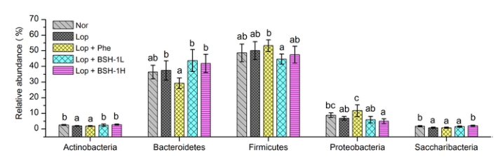 BSH-1是一種從竹屑中提取的O-乙酰化木聚糖。該研究測定了BSH-1對洛哌丁胺(Lop)誘導(dǎo)的小鼠便秘的保護作用。小鼠每日灌胃BSH-1,連續(xù)14天。在便秘小鼠中,BSH-1顯著縮短排便時間,提高胃腸(GI)通過率、糞便產(chǎn)量和盲腸短鏈脂肪酸(SCFAs)濃度。BSH-1調(diào)節(jié)血清胃腸激素和神經(jīng)遞質(zhì)水平。BSH-1還顯著改變了便秘小鼠的盲腸菌群,增加了潛在有益細(xì)菌(如 Lactobacillus, Roseburia和 Bacteroidales_S24–7)的豐度,減少了潛在致病菌(如Alloprevotella和Staphylococcus)。此外,結(jié)腸轉(zhuǎn)錄組分析表明,BSH-1顯著逆轉(zhuǎn)了便秘小鼠腸道運動、水和離子轉(zhuǎn)運、炎癥和癌癥相關(guān)基因的表達(dá)變化。結(jié)果表明,BSH-1能有效緩解LOP誘導(dǎo)的小鼠便秘,有可能用于便秘的治療。