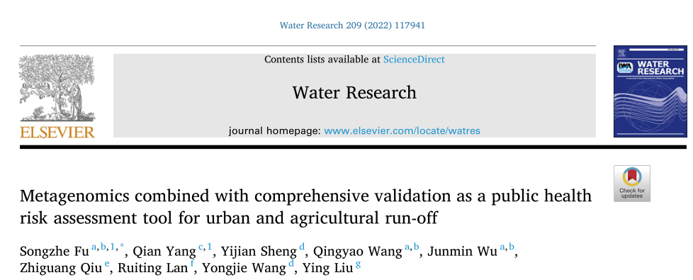 2021年12月4日,大連海洋大學(xué)海洋科學(xué)與環(huán)境學(xué)院在JCR Q1區(qū)期刊《Water Research》上發(fā)表了題為“Metagenomics combined with comprehensive validation as a public health risk assessment tool for urban and agricultural run-off”的研究論文,該論文提出了一個(gè)由病原體篩選、病原體基因分型和風(fēng)險(xiǎn)評估三個(gè)階段組成的公共健康風(fēng)險(xiǎn)評估流程:1)運(yùn)用宏基因組測序、微流控芯片和qPCR對病原體進(jìn)行篩選,2)多位點(diǎn)序列分型(MLST)或常規(guī)PCR進(jìn)行病原菌分離和基因分型;3)對宏基因組數(shù)據(jù)的毒力基因進(jìn)行致病性評估。