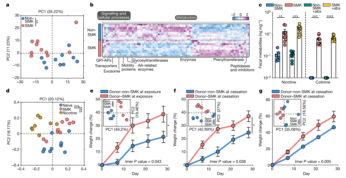 12月|Nature:腸道菌群調(diào)節(jié)小鼠停止吸煙暴露后的體重增加