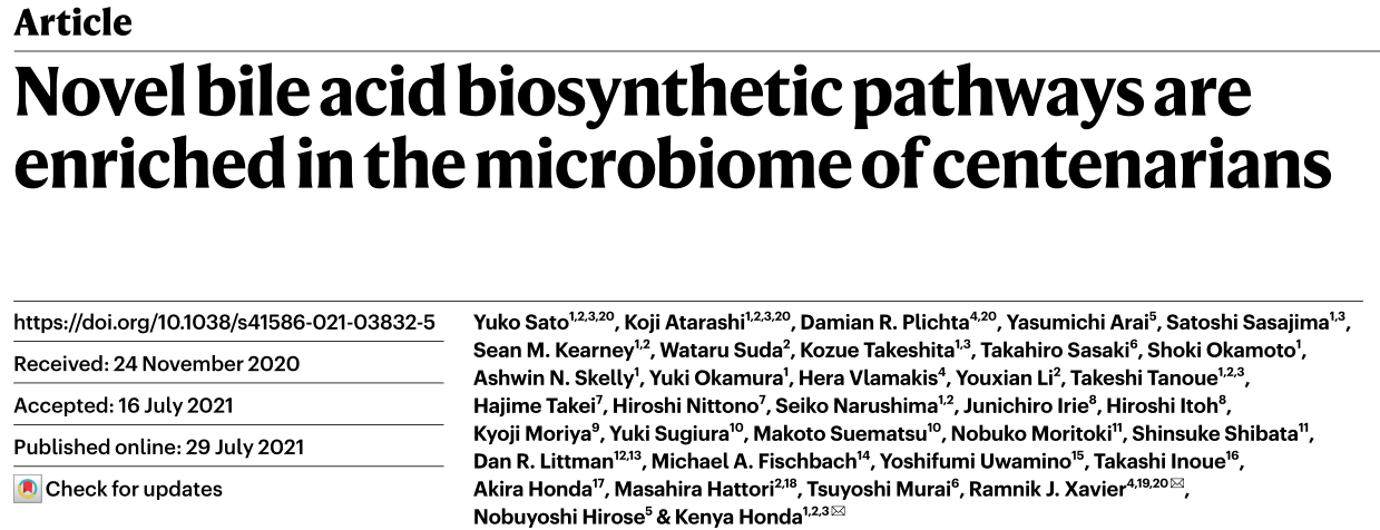 7月|Nature:新膽汁酸生物合成途徑在百歲老人的微生物群中富集
