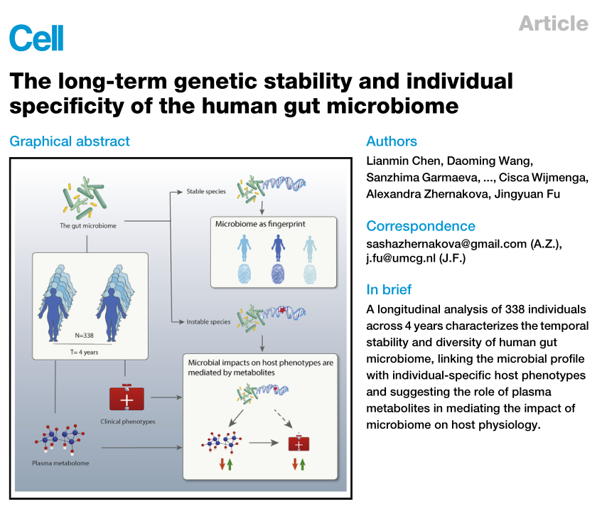 4月|Cell:人腸道微生物群的長期遺傳穩(wěn)定性和個體特異性