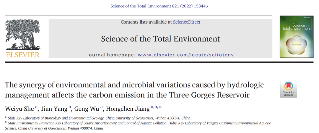 3.?She?W,?Yang?J,?Wu?G,?et?al.?The?synergy?of?environmental?and?microbial?variations?caused?by?hydrologic?management?affects?the?carbon?emission?in?the?Three?Gorges?Reservoir[J].?Science?of?The?Total?Environment,?2022,?821:?153446.