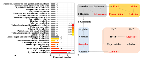 本研究旨在揭示中鏈甘油單酯?(MG)?補充劑引起的雞肉鮮肉質(zhì)量、成分和味道的差異。結(jié)果表明,添加?MG?可改善雞湯和肉味。上調(diào)升-carnosine,肌氨酸,尿苷和促成了鮮味和肉味的MG組的雞湯煙酰胺。膳食MG增加了雞胸肉肌肉中的總超氧化物歧化酶活性和氨基酸含量,并降低了丙二醛含量和滴水損失。此外,肉類代謝組顯示肌酸、甜菜堿、l-鵝肌氨酸、肌苷?5′-單磷酸、次黃嘌呤、肌苷和磷脂,以及氨基酸和嘌呤代謝途徑,與通過添加?MG?改善肉雞的肉質(zhì)、成分和味道有關(guān)??傊?,這些發(fā)現(xiàn)提供了證據(jù),證明添加?MG?可以改善肉雞的鮮肉質(zhì)量、成分和味道。