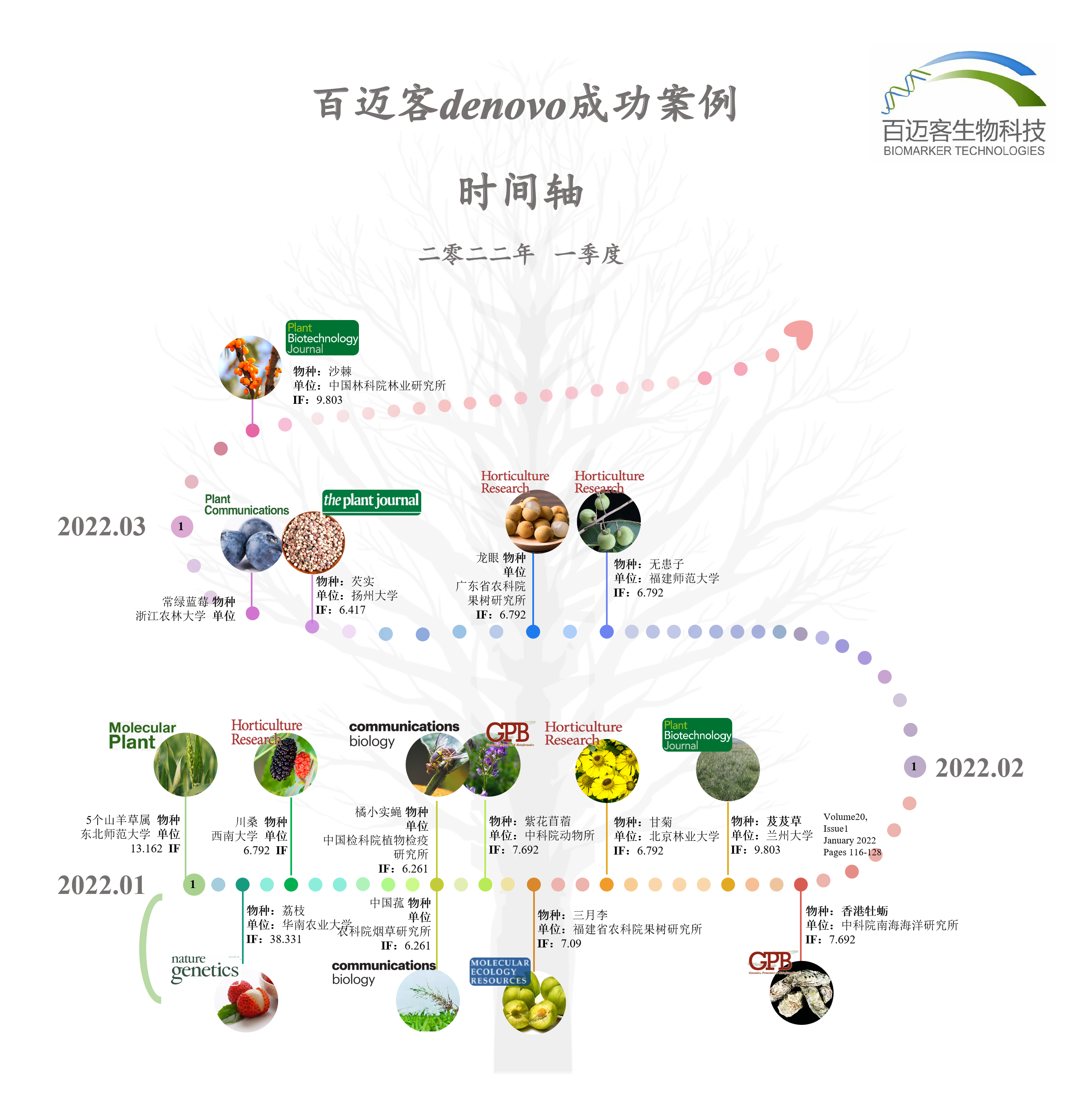 百邁客基因組研究合作項(xiàng)目陸續(xù)見刊,一季度成功助力15余篇研究成果Online于國際知名期刊,這些項(xiàng)目中,百邁客有幸作為共同作者or參與其中基因組測(cè)序or基因組組裝分析等相關(guān)工作。文章既是實(shí)力的認(rèn)可,也是服務(wù)的肯定!接下來,讓我們一起隨著時(shí)間線看看這些高質(zhì)量的文章都挖掘了怎樣精彩的故事~