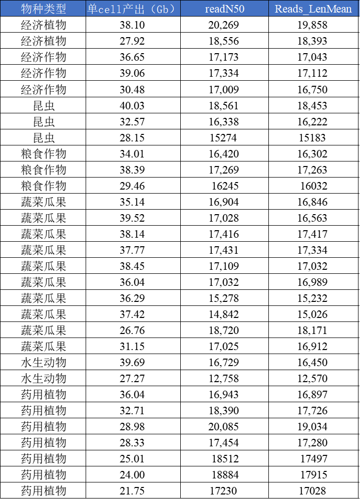 (注:物種類型、組織部位、材料狀態(tài)都是影響數(shù)據(jù)產(chǎn)出與讀長的關(guān)鍵因素,最終產(chǎn)出以實際項目為準)
