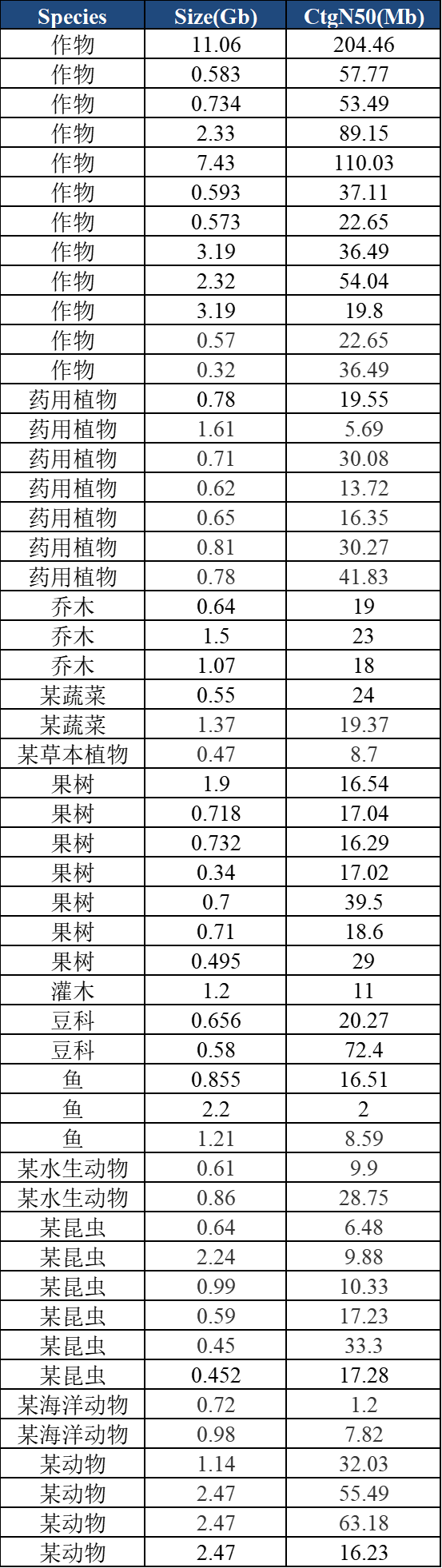 ② 百邁客動植物基因組組裝結(jié)果展示(部分)
