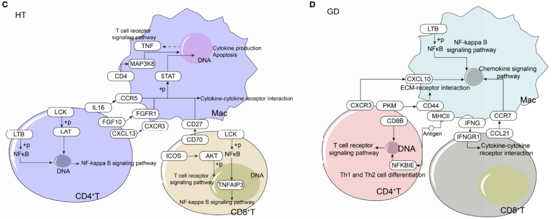 6、HT和GD微環(huán)境中T細(xì)胞和巨噬細(xì)胞的調(diào)控網(wǎng)絡(luò)分析