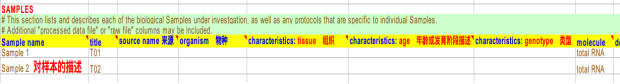 樣品的詳細信息,包括樣品名稱、來源、器官、年齡、表達值數據和原始數據等
