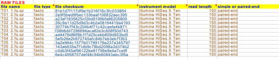 原始數據文件名稱、格式、MD5碼、平臺類型、測序讀長和單雙端信息
