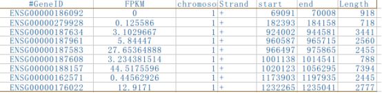 如果表達量文件包含新預測的基因,還需要補充新基因(已知基因可選填)的Chromosome(染色體號)、Strand(正負鏈信息)、start(起始位置)、end(終止位置)、length(長度)。