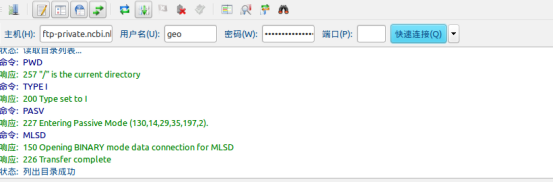 上傳數據有以上兩種途徑,小編比較推薦第一種,利用FileZilla軟件,下載地址點擊圖片的鏈接,打開FileZilla軟件,開始上傳數據,主機(H) 框填寫上圖中host對應的內容ftp-private.ncbi.nlm.nih.gov,用戶名(U)填寫geo,密碼填寫 33%9uyj_fCh?M16H,端口號可不填,全部填好后,點擊快速連接按鈕