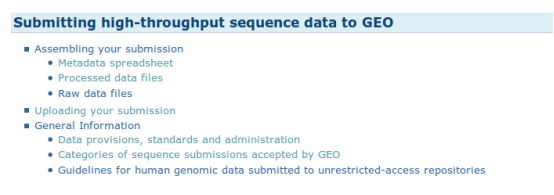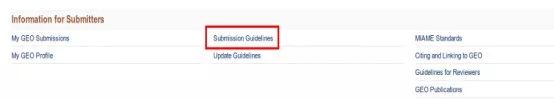 登錄成功后,回到GEO的主頁,點擊 ?Submission Guidelines
