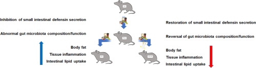 一句話總結(jié):EA通過促進腸道防御素、拯救失調(diào)的盲腸微生物菌群,以協(xié)同模式減少脂質(zhì)吸收來發(fā)揮抵抗肥胖作用。