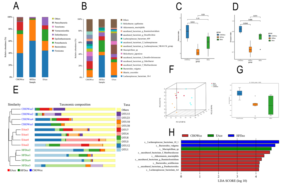 3、EA 恢復了空腸和盲腸中失調(diào)的微生物菌群
