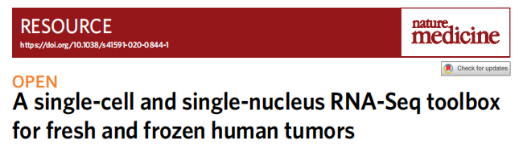 [1]A single-cell and single-nucleus RNA-Seq toolbox for fresh and frozen human tumors.Michal Slyper, Caroline B. M. Porter, Orr Ashenberg, et al .Nature Medicine ,May 2020,VOL 26:792-802