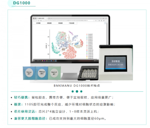 最后,制備合格的單細(xì)胞懸浮液/原生質(zhì)體/細(xì)胞核樣本,可以直接通過(guò)百創(chuàng)DG1000單細(xì)胞微液滴系統(tǒng),實(shí)現(xiàn)高通量的單細(xì)胞精準(zhǔn)捕獲。百創(chuàng)DG1000是基于微流控、油滴包裹和Barcode標(biāo)記等技術(shù)來(lái)實(shí)現(xiàn)高通量的細(xì)胞捕獲。除了儀器以外,百創(chuàng)DG1000還有配套的2×4的獨(dú)立芯片及配套試劑盒。