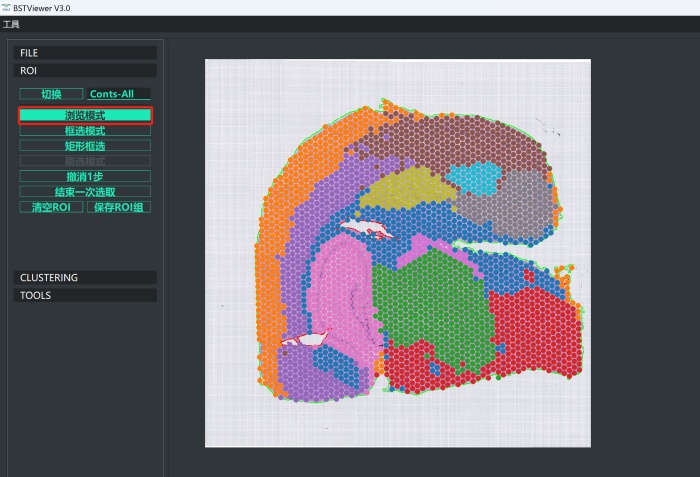 6)最后得到框選到的感興趣區(qū)域的聚類結(jié)果,點(diǎn)擊“ROI”切換為“瀏覽模式”可以通