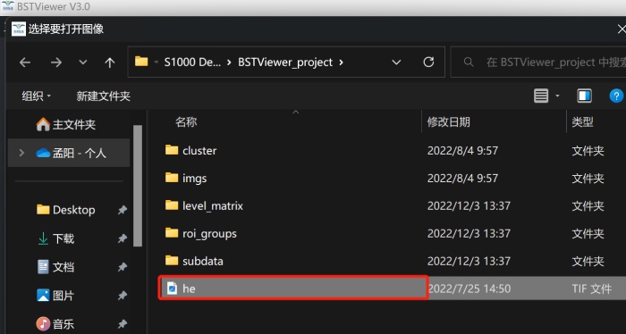 1)將官網(wǎng)下載到的BSTViewer_project文件夾數(shù)據(jù)(或者通過運(yùn)行BSTMatrix 得到的BSTViewer_project 文件夾)存放到英文命名的文件夾之中;【包括各個(gè)級別分辨率矩陣文件,及BMChiper 或者官網(wǎng)下載的HE 染色圖片】可以同時(shí)在此文件夾下邊新建一個(gè)outdir 作為文件輸出路徑;