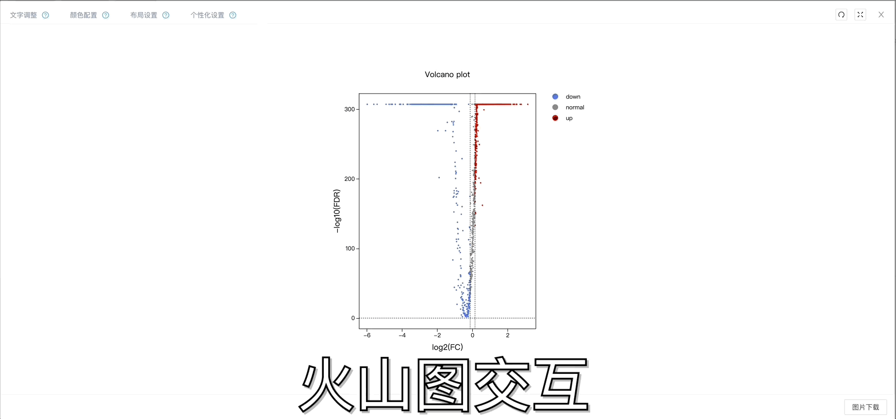 做完細(xì)胞聚類cluster之間的差異基因分析后,可通過火山圖查看基因的表達(dá)情況。可查看火山圖中點對應(yīng)的基因,樣式可自定義。