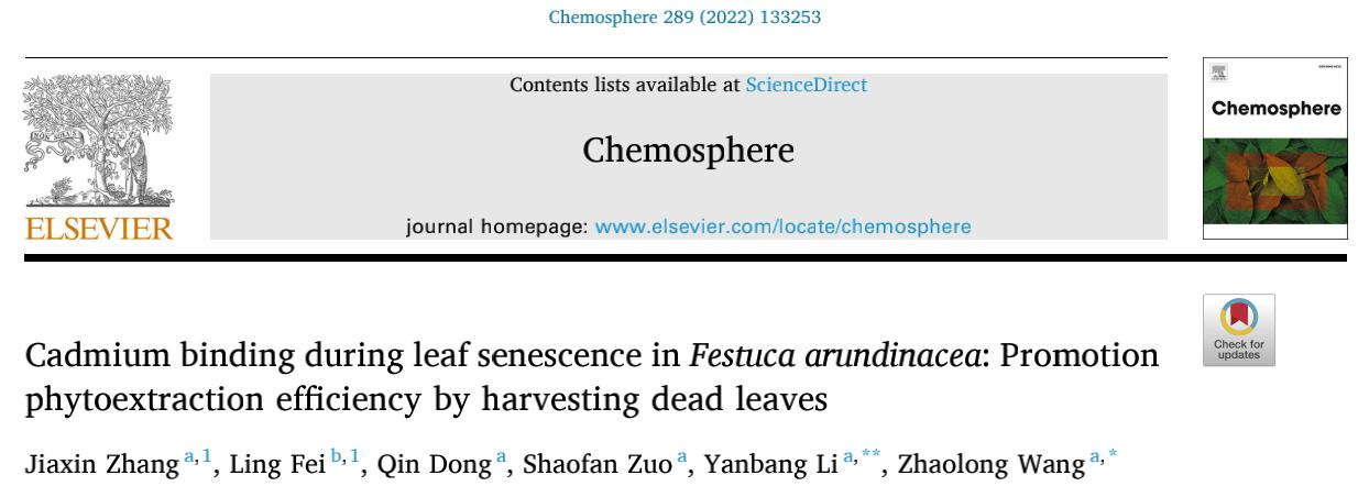 英文標(biāo)題:CadmiumbindingduringleafsenescenceinFestucaarundinacea:Promotionphytoextractionefficiencybyharvestingdeadleaves