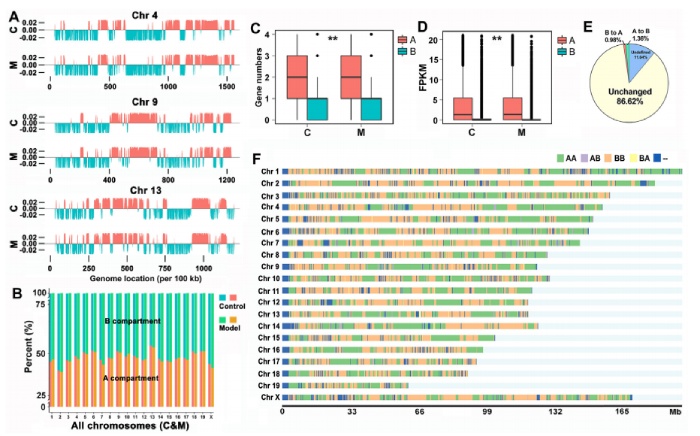 圖3通過(guò)Hi-C和RNA-seq檢測(cè)NAFLD小鼠肝臟A/B區(qū)及相關(guān)DEGs的變化。
