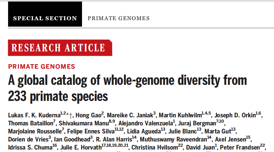 題目:233種靈長(zhǎng)類(lèi)物種全基因組多樣性比較分析