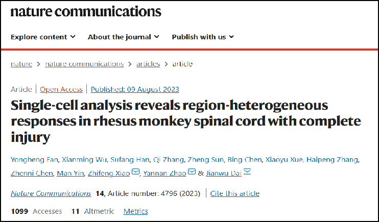 單細(xì)胞技術(shù)解析靈長(zhǎng)類脊髓損傷修復(fù)機(jī)制