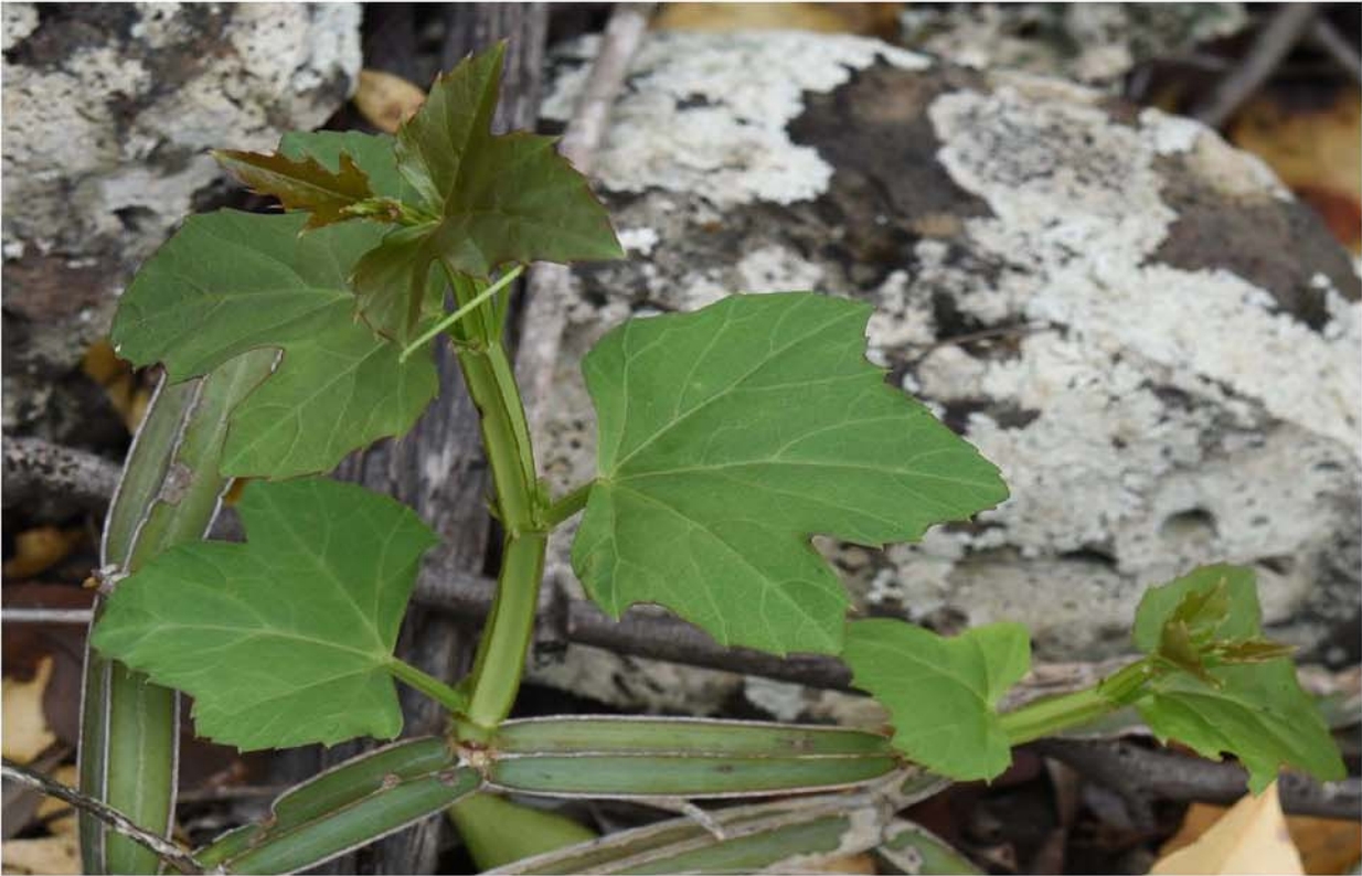 方莖白粉藤(Cissus quadrangularis)是葡萄科白粉藤屬多年生肉質(zhì)藤本,主要分布于熱帶亞熱帶地區(qū),具有很強(qiáng)的抗旱能力。方莖白粉藤的葉片和莖中的光合途徑不同,葉片中為C3途徑,而莖中為景天酸代謝(crassulacean acid metabolism,CAM)途徑,是研究植物干旱適應(yīng)和CAM起源的好材料。