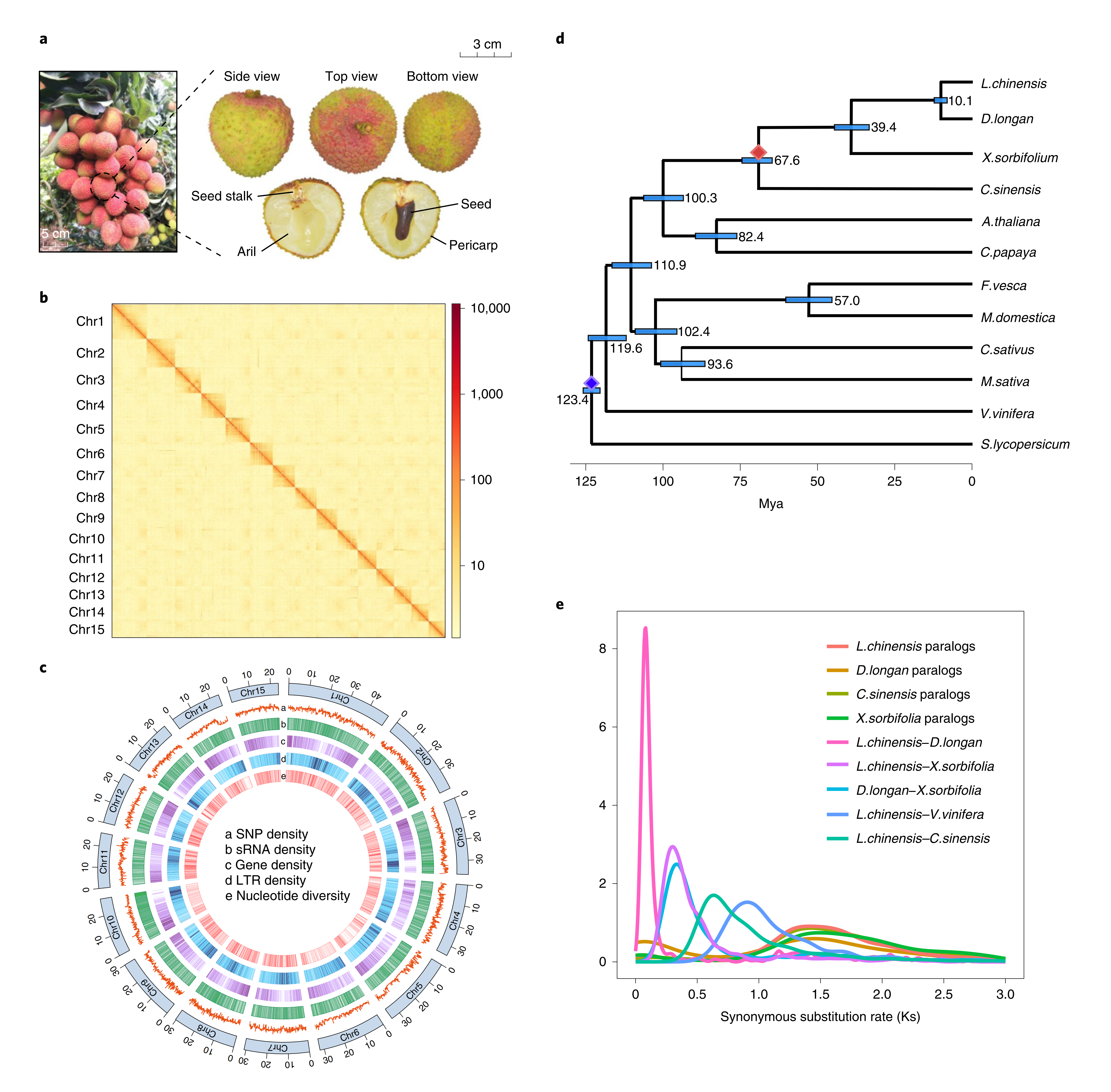 文章標(biāo)題:Two divergent haplotypes from a highly heterozygous lychee genome suggestindependent domestication events for early and late-maturing cultivars