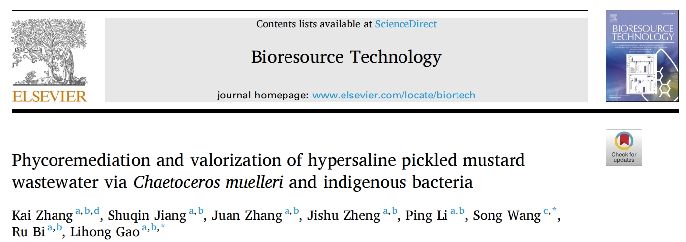 英文標(biāo)題:?Phycoremediation and valorization of hypersaline pickled mustard wastewater via?Chaetoceros muelleri?and indigenous bacteria