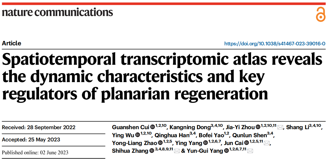 英文標題:Spatiotemporal transcriptomic atlas reveals the dynamic characteristics and key regulators of planarian regeneration