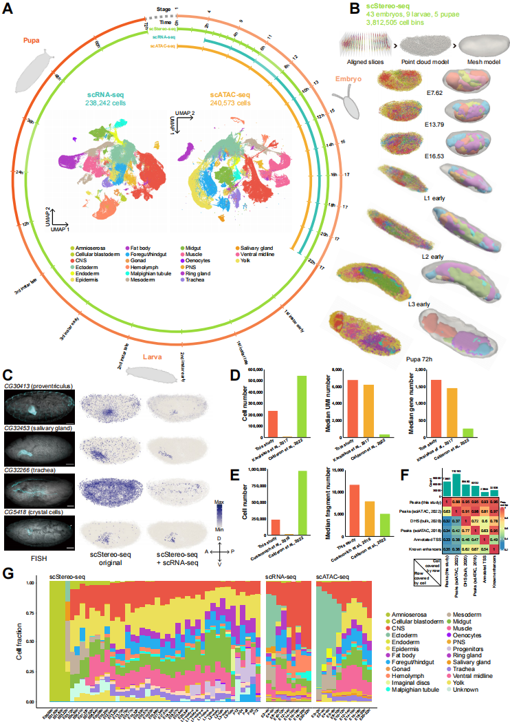 案例二——從果蠅胚胎發(fā)育到蛻變的單細胞三維時空多組學圖譜