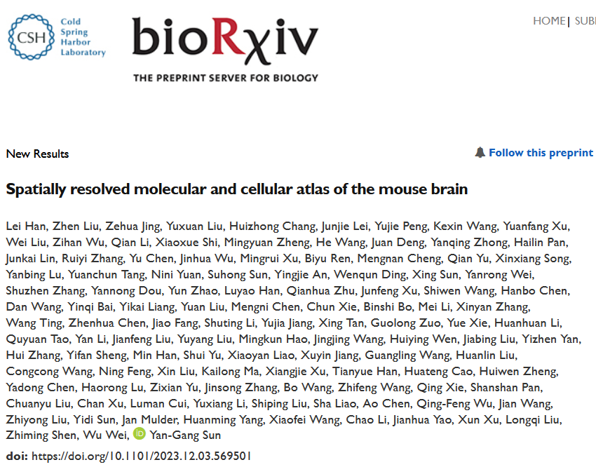 英文標題:Spatially resolved molecular and cellular atlas of the mouse brain