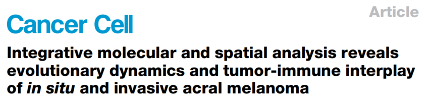 中文題目:整合分子和空間分析揭示原位和侵襲性肢端黑色素瘤的進化動態(tài)和腫瘤免疫相互作用