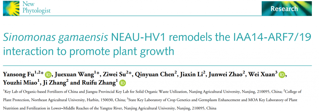 中文標(biāo)題:《Sinnomaras gamaensis NEAU-HV1通過(guò)重塑IAA14-ARF7/19互作促進(jìn)植物生長(zhǎng)》