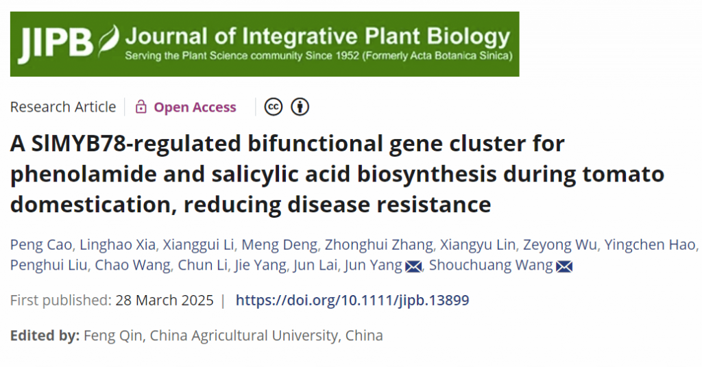 近日,《Journal of Integrative Plant Biology》在線發(fā)表了海南大學(xué)南繁學(xué)院王守創(chuàng)教授團(tuán)隊題為“A SlMYB78-regulated bifunctional gene cluster for phenolamide and salicylic acid biosynthesis during tomato domestication, reducing disease resistance”的研究論文。首次揭示植物抗病代謝通路中存在雙功能基因簇(BGC2),其核心基因 SlEPS1在馴化中因負(fù)選擇導(dǎo)致功能衰退的分子機(jī)制:其編碼的雙功能酶兼具催化抗菌物質(zhì)酚胺與免疫激素水楊酸的雙重功能,為植物代謝與抗病研究提供新路徑。