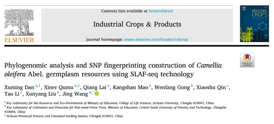 2025年4月2日,Industrial Crops & Products在線發(fā)表了由四川省林草局、四川大學(xué)生命科學(xué)學(xué)院王婧教授課題組聯(lián)合中南林業(yè)科技大學(xué)等多家單位合作完成的研究論文,題為” Phylogenomic analysis and SNP fingerprinting construction of Camellia oleifera Abel. germplasm resources using SLAF-seq technology”。該研究利用SLAF-seq技術(shù),對(duì)四川省主栽的來(lái)自我國(guó)南方25個(gè)主要油茶品種開(kāi)展了系統(tǒng)發(fā)育和群體基因組學(xué)研究,并篩選關(guān)鍵SNP標(biāo)記構(gòu)建了DNA指紋圖譜。該指紋圖譜的構(gòu)建有望為我國(guó)南方尤其是四川地區(qū)油茶種質(zhì)資源保護(hù)、開(kāi)發(fā)利用及品種選育提供關(guān)鍵科學(xué)依據(jù)。