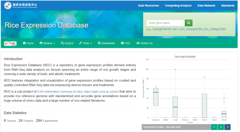 ☆?水稻基因表達庫RED:是一個基因表達譜存儲庫,對跨越整個水稻生長階段的組織進行?RNA-Seq?數(shù)據(jù)分析,涵蓋各種生物和非生物處理。
