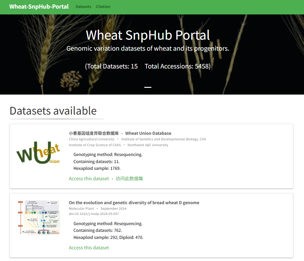 ☆?水稻、小麥和大豆的分子育種資源庫:這是一個集成數(shù)據(jù)庫,收集了群體測序、種質資源、表型和各種基因組數(shù)據(jù)。