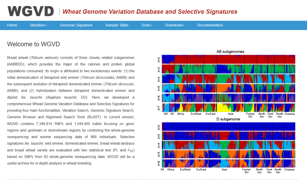 ☆?小麥及其祖先的基因組變異數(shù)據(jù)庫:適用于多套小麥及祖先種變異數(shù)據(jù)集的查詢,可對大規(guī)模樣本的VCF文件實現(xiàn)在線的快速檢索和分析可視化。