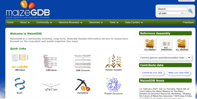 ☆?玉米基因組和遺傳分析平臺:數(shù)據(jù)庫包含了玉米的基因組序列、基因注釋、遺傳圖譜、突變體信息、表達數(shù)據(jù)、相關的文獻和研究工具。旨在支持玉米遺傳學和基因組學的研究,為科研工作者提供訪問和分析玉米的遺傳和基因組數(shù)據(jù)的平臺。