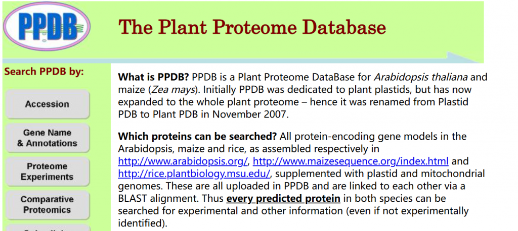 ☆?擬南芥和玉米蛋白質組數(shù)據(jù)庫:為通過實驗鑒定擬南芥和玉米中的蛋白質提供了集成資源。內部BLAST比對鏈接玉米和擬南芥信息,實驗鑒定基于細胞類型特異性蛋白質組或特定亞細胞蛋白質組(例如葉綠體,類囊體,核苷)和總葉蛋白質組樣品的內部質譜(MS)。