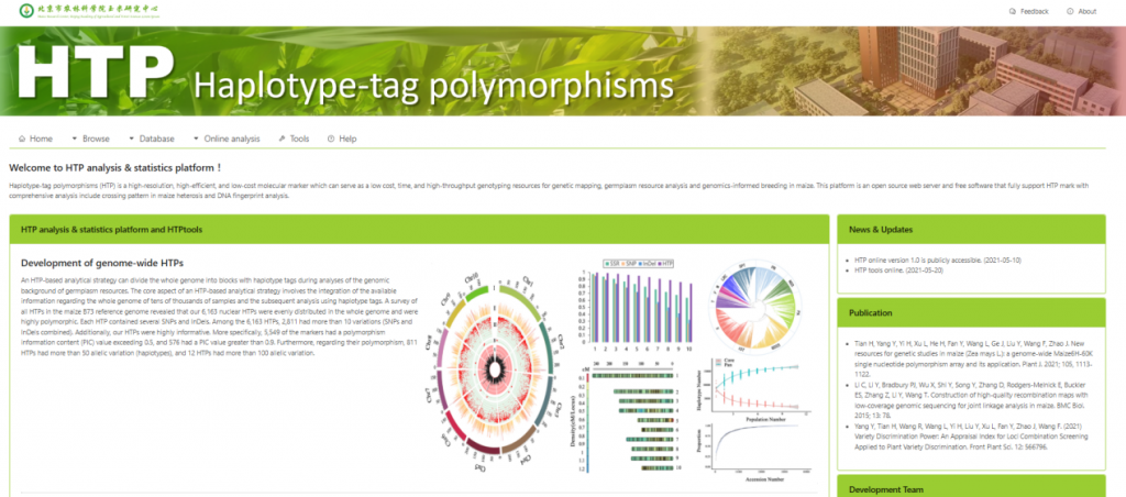 ☆?利用玉米單倍型標簽多態(tài)性分析工具:HTP數(shù)據(jù)庫(HTPdb):該數(shù)據(jù)庫覆蓋了育種中常用的3,587個重要玉米自交系,其中包括172,921個非冗余的HTP等位基因變異,提供了豐富的單倍型標簽資源。同時,基于HTP標記的特點,研究人員在HTPTools中集成了智能區(qū)塊數(shù)據(jù)填充算法,當僅需獲取少量HTP標記的基因型時,可以通過該功能快速地獲取對應區(qū)塊的完整數(shù)據(jù)。