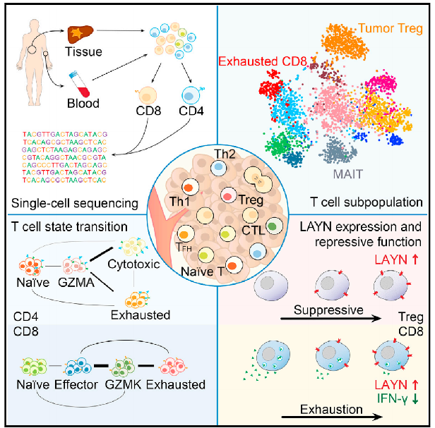 2017年,張澤民院士研究組,通過大規(guī)模單細胞測序技術對肝癌相關T淋巴細胞進行分析,首次在單細胞水平上描繪肝癌微環(huán)境中免疫細胞圖譜,發(fā)現(xiàn)了肝癌免疫療法的潛在靶點,也為我們從多角度系統(tǒng)性理解肝癌T淋巴細胞特征奠定了基礎。(2017,Cell,Landscape of Infiltrating T Cells in Liver Cancer Revealed by Single-Cell Sequencing)
